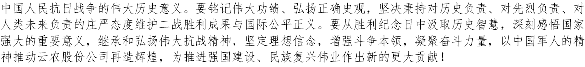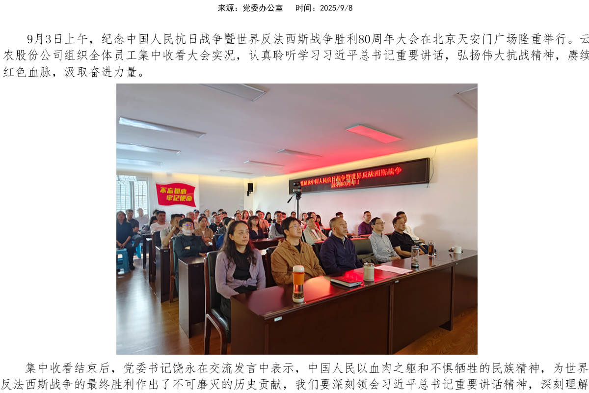 云农股份公司组织全体员工集中收看纪念中国人民抗日战争暨世界反法西斯战争胜利80周年大会